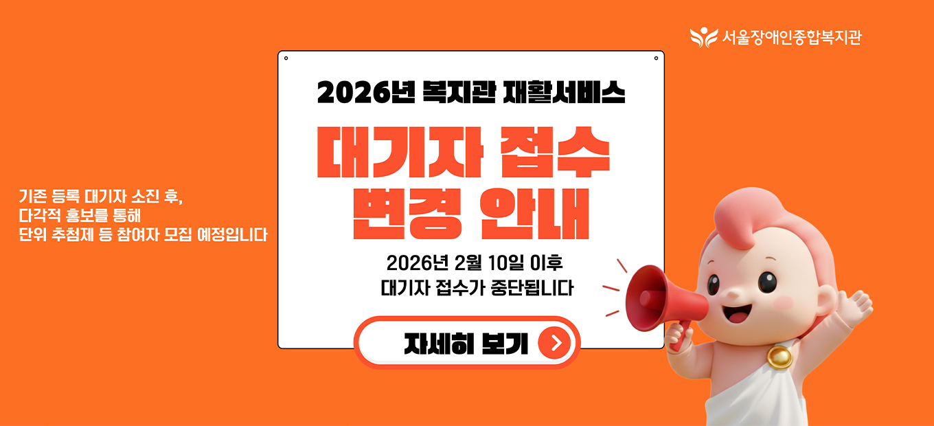 서울장애인종합복지관 지역포괄촉진부 지역생활지원팀 사회복지사(사회복지공동모금회 기획사업 담당인력) 채용(2026.01.27. 공고)에 지원해 주신 모든 분들께 진심으로 감사드리며 아…
