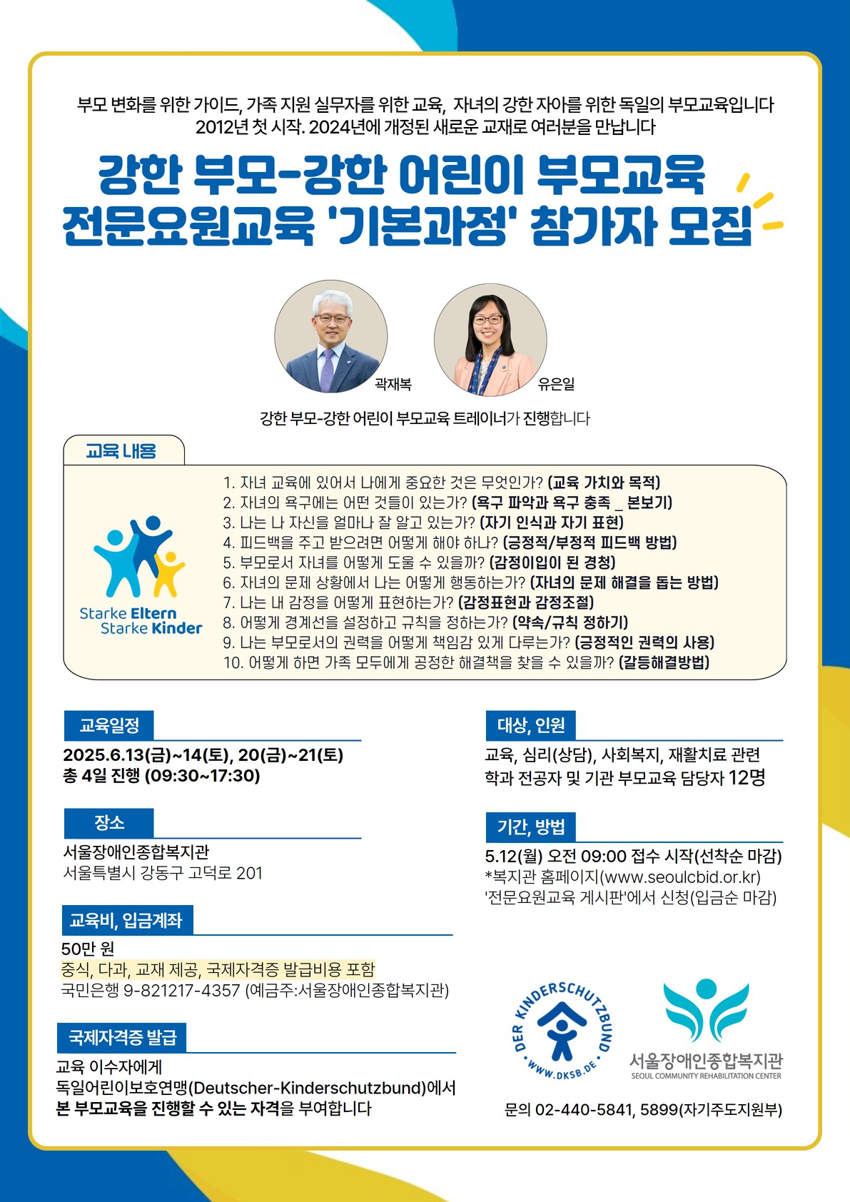 2025년 <강한부모 강한어린이 부모교육> 전문요원교육 기본과정 참여자 모집