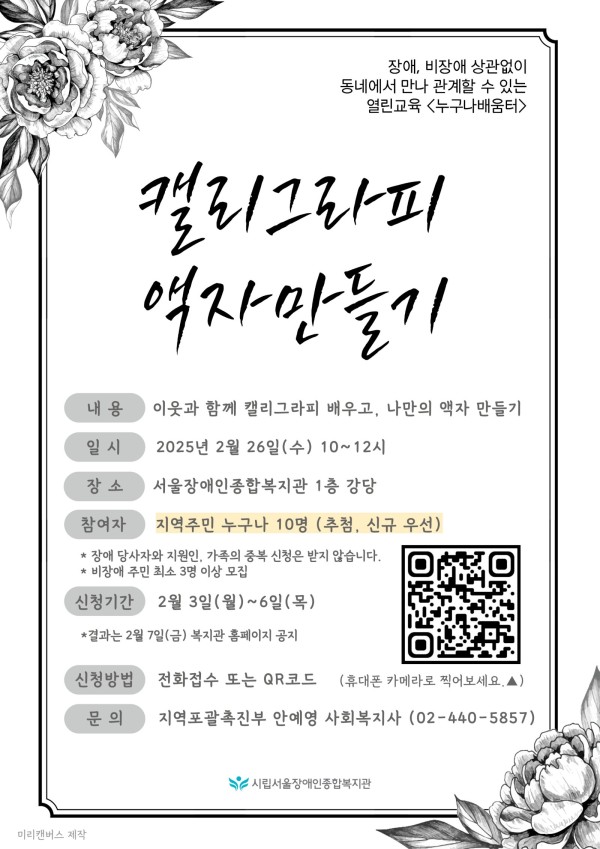 마감 열린교육 누구나배움터 <캘리그라피 액자만들기> 참여자 모집