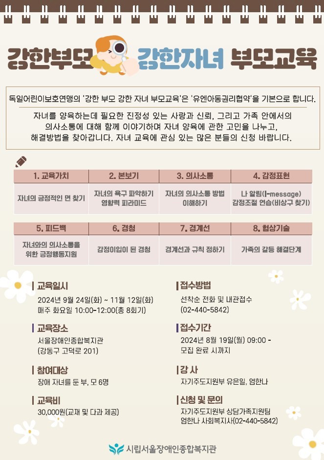 마감 2024년 강한부모 강한자녀 부모교육 참가자 모집