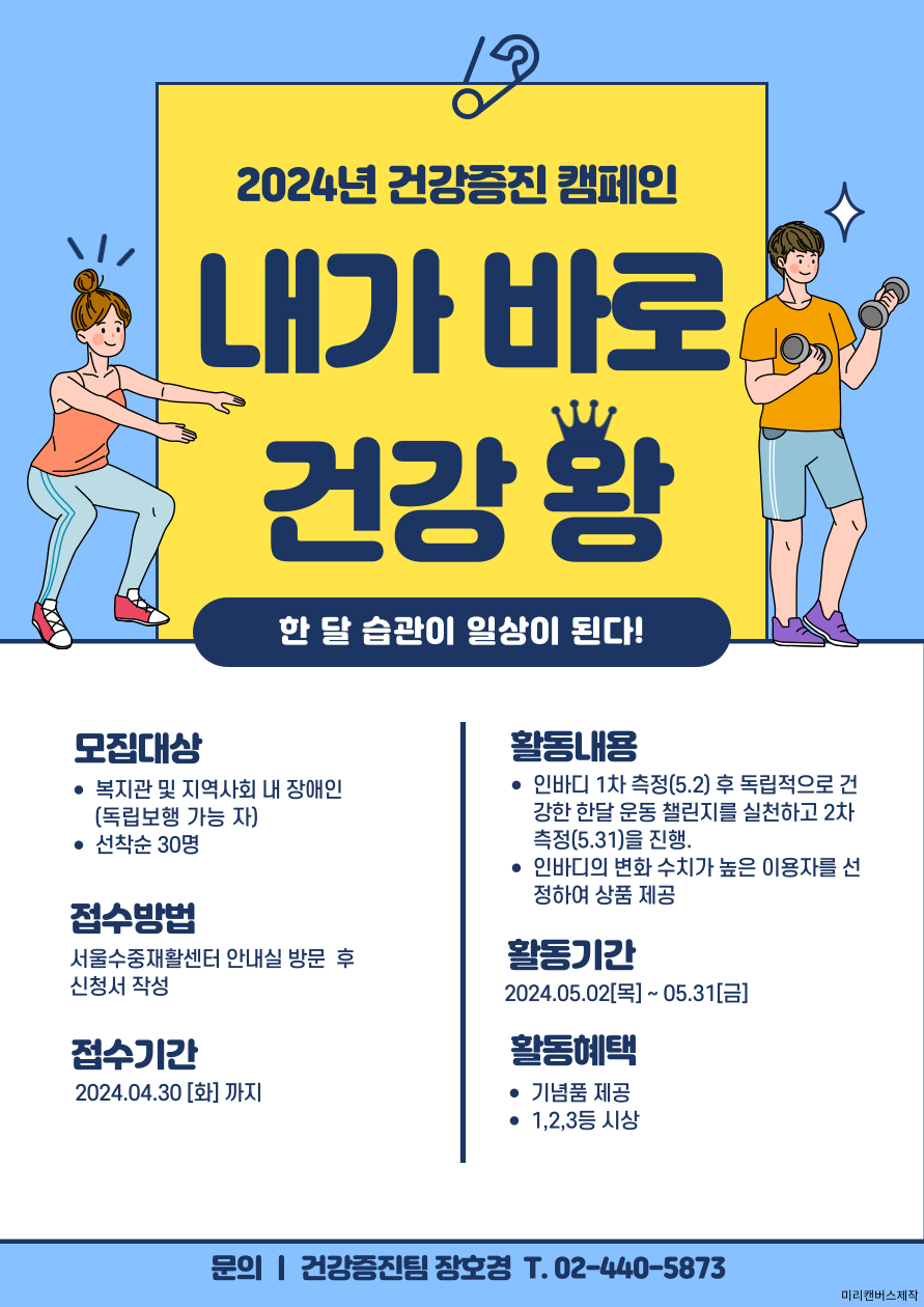 마감 "건강한 한달 운동 챌린지" 2024년 건강증진 캠페인 '내가 바로 건강 왕' 참가자 모집