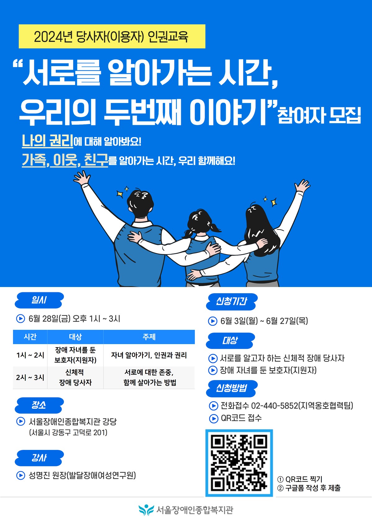 마감 2024년 당사자(이용자) 인권교육 '서로를 알아가는 시간, 우리의 두번째 이야기' 참여자 모집