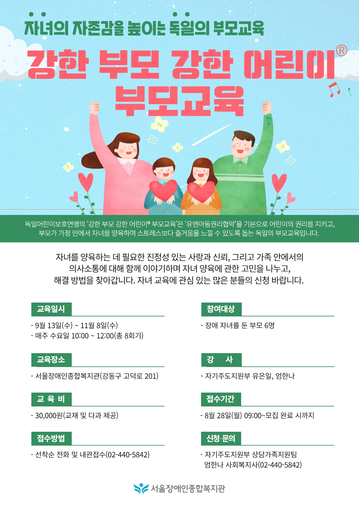 * 문의: 자기주도지원부 상담가족지원팀 엄한나 사회복지사(02-440-5842)