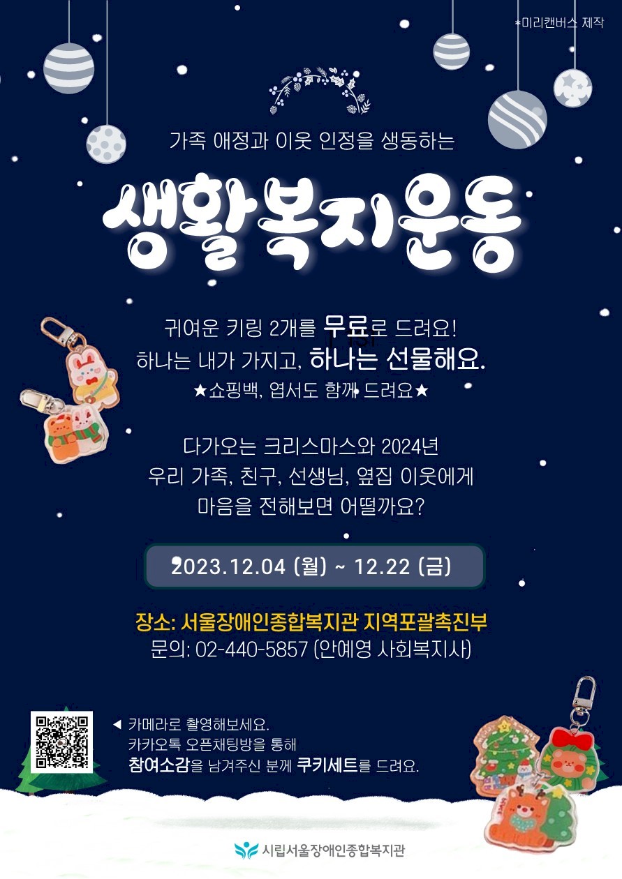 12월 4일부터 12월 22일까지 진행되니까요, 지역포괄촉진부로 오셔서 키링 받아가세요~