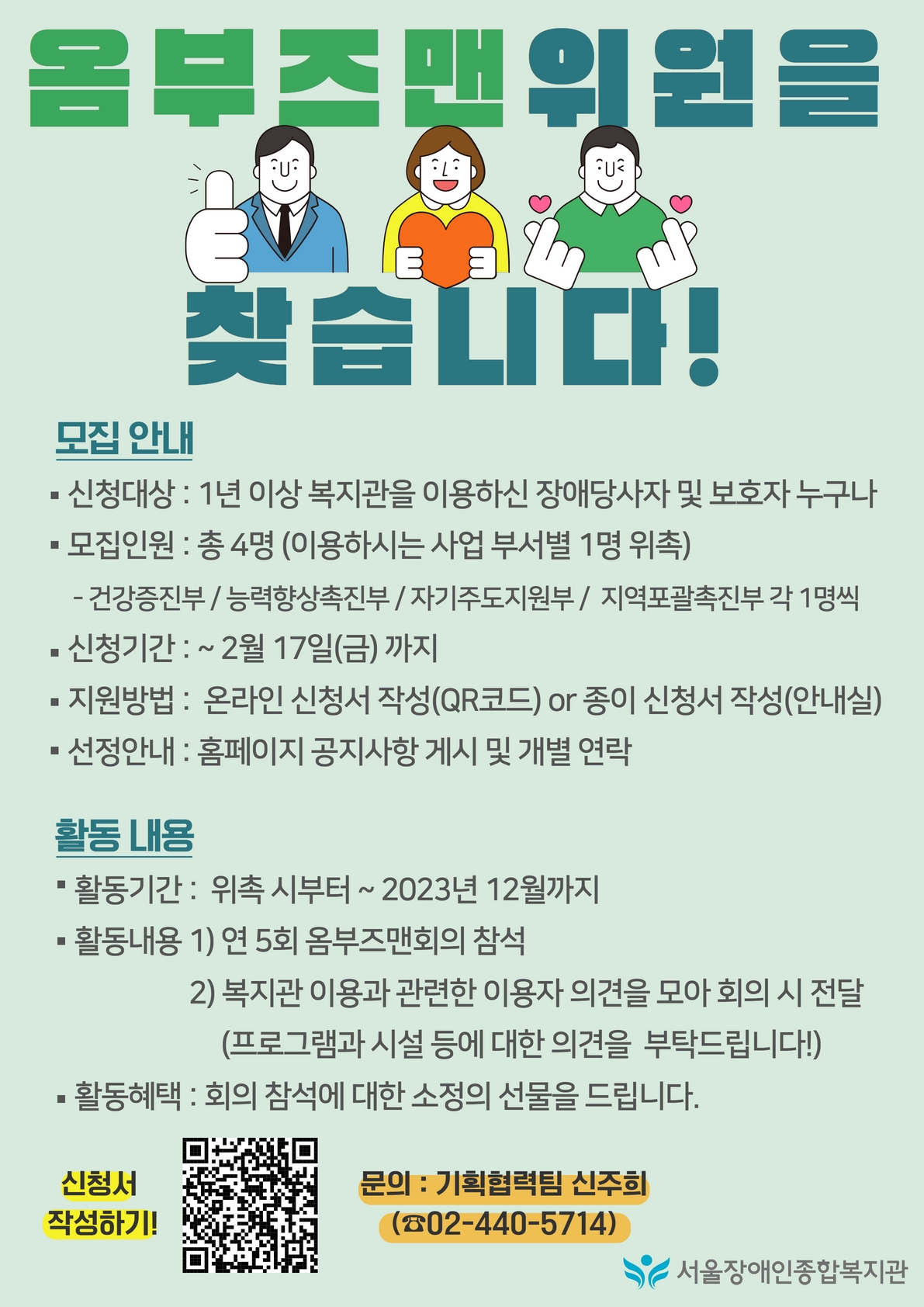 마감 [모집 완료]2023년 옴부즈맨 위원(이용자 모니터링단) 모집 안내