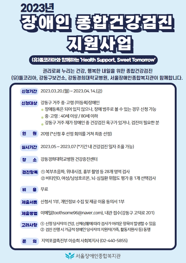 (유)돌코리아, 강동구보건소, 강동경희대학교병원, 서울장애인종합복지관이 함께합니다.