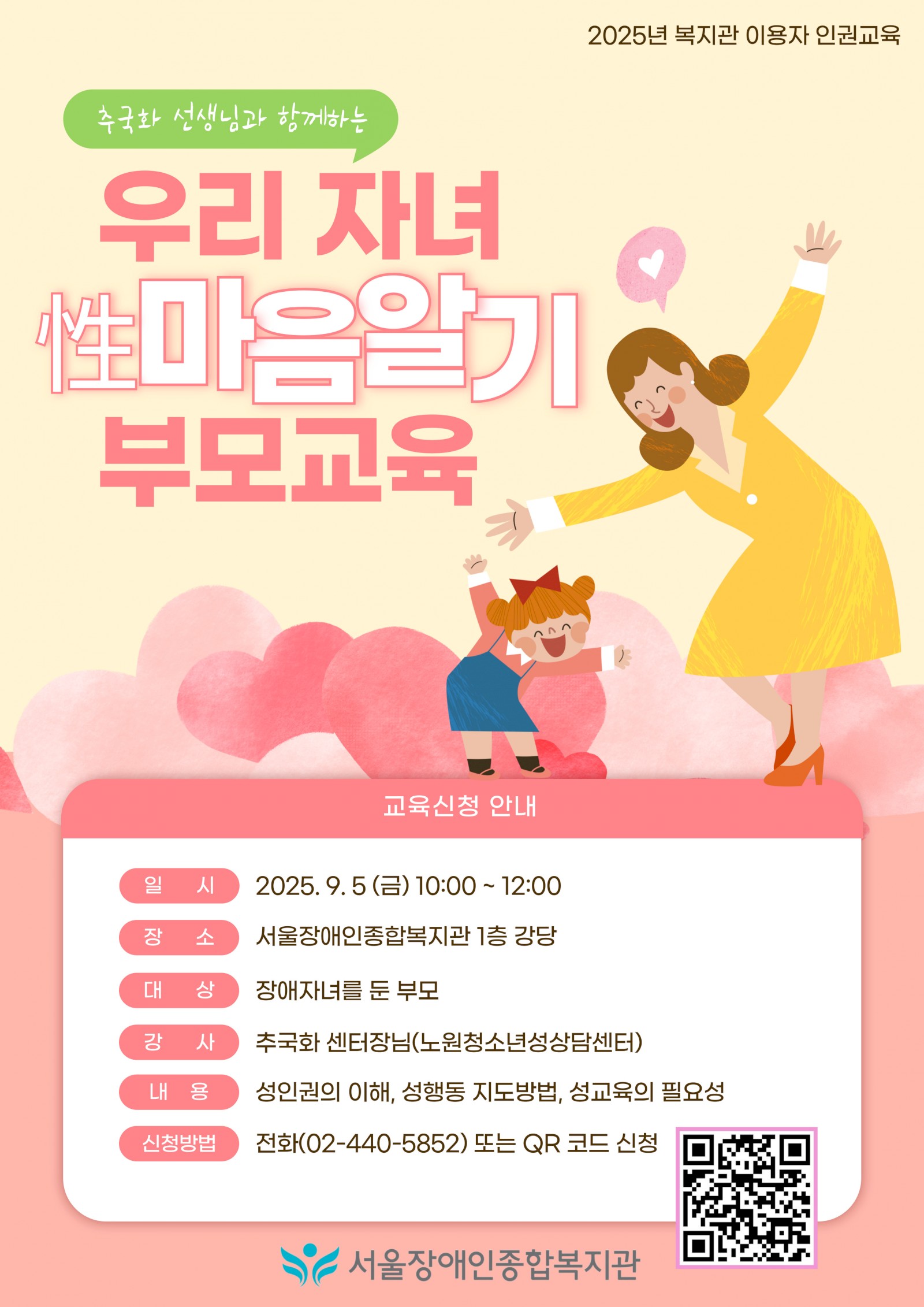 '우리 자녀 성(性) 마음알기 부모교육(이용자 인권교육)' 참여자 모집