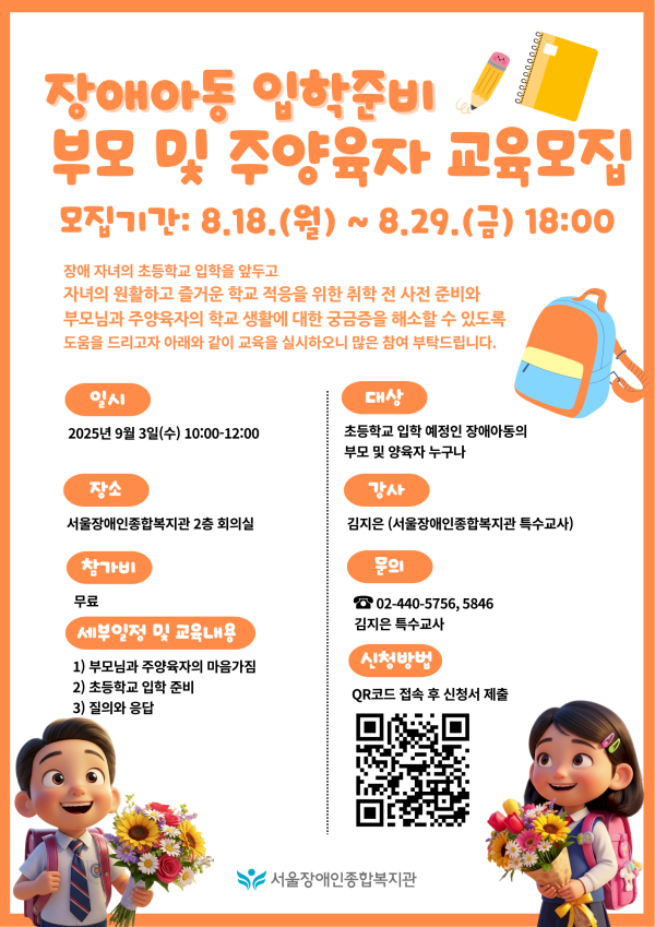 마감 장애아동 입학준비 부모 및 주양육자 교육