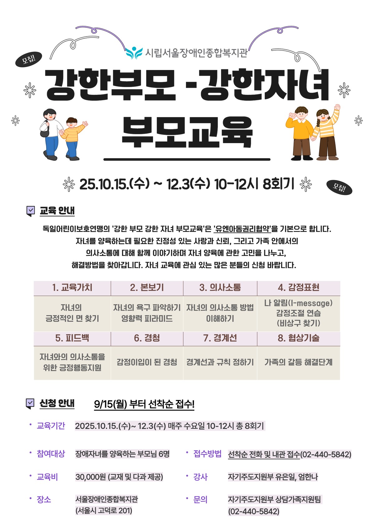 마감 2025년 강한 부모 강한 어린이 부모교육 참가가족 모집