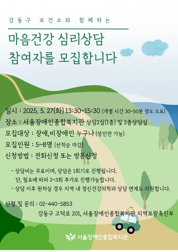마감 강동구 보건소와 함께하는 '찾아가는 마음건강' 심리상담 참여자 모집