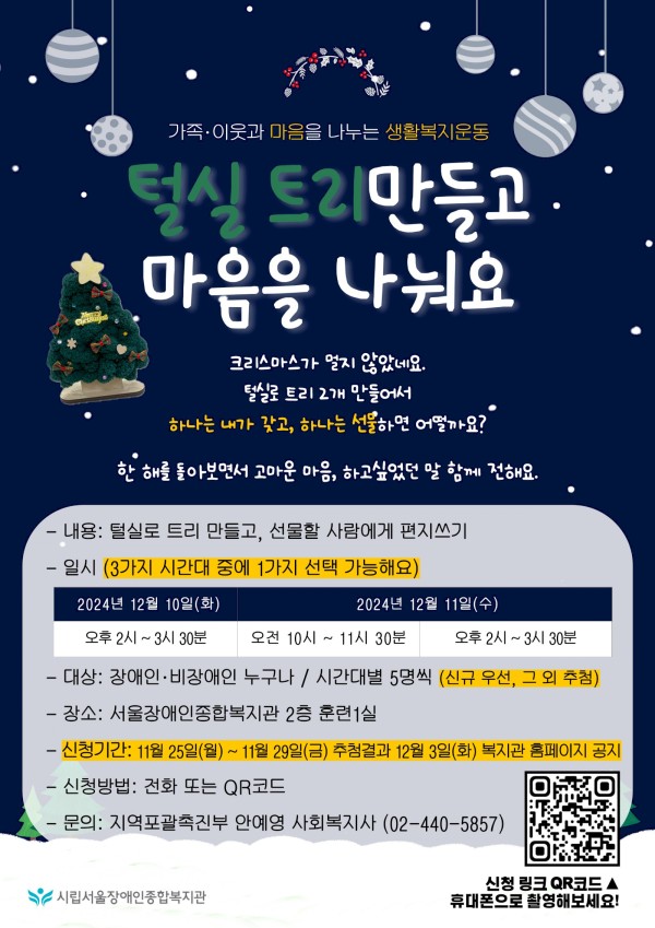 마감 (모집 마감) 털실 트리 만들고 마음을 나눠요 (신청기간: 11/25~11/29)