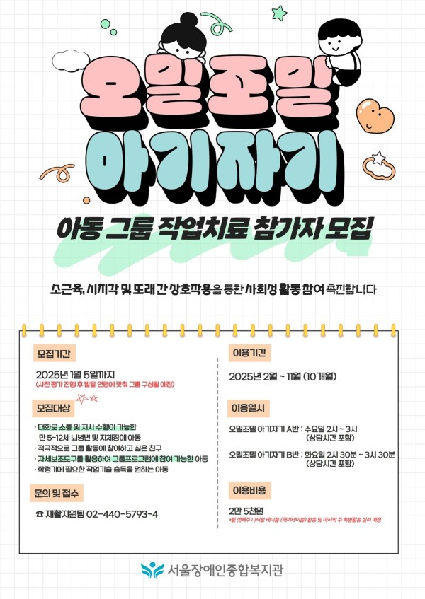 마감 2025년 아동 그룹작업치료 '오밀조밀 아기자기' 참가자 모집