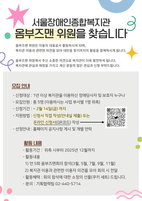 마감 2025년 옴부즈맨 위원(이용자 모니터링단) 모집 안내