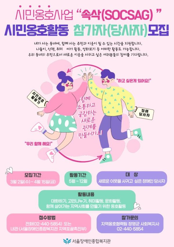-접수방법: 전화(02-440-5854) 또는 내관(서울장애인종합복지관 지역포괄촉진부)