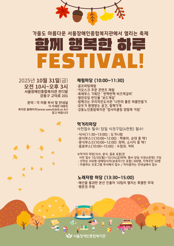 가을도 아름다운 서울장애인종합복지관에서 열리는 축제, <2025 함께 행복한 하루 축제>로 초대합니다