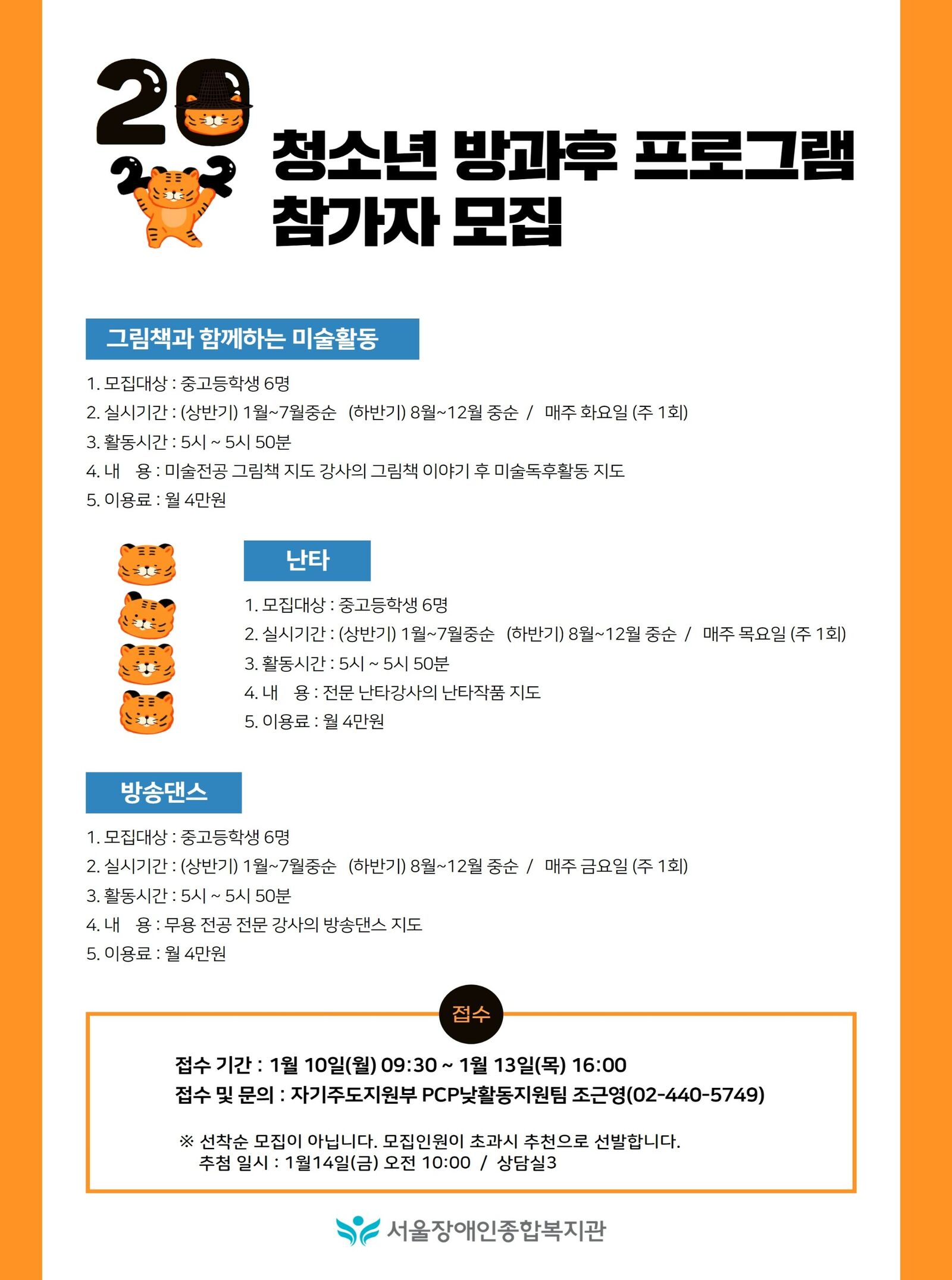 접수 및 문의 : 자기주도지원부 PCP낮활동지원팀 조근영(02-440-5749)