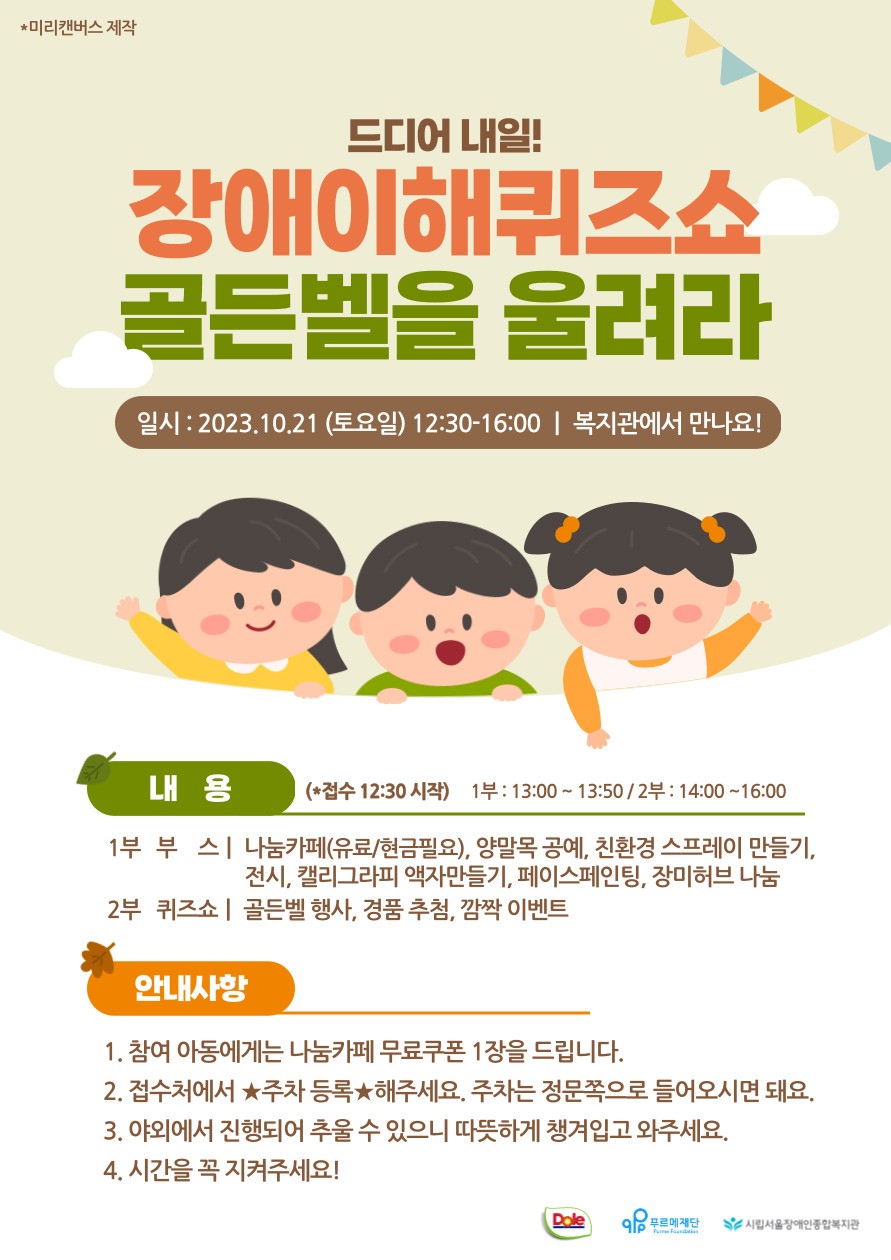 일시 : 2023.10.21.(토요일) 12:30-16:00 | 복지관에서 만나요!