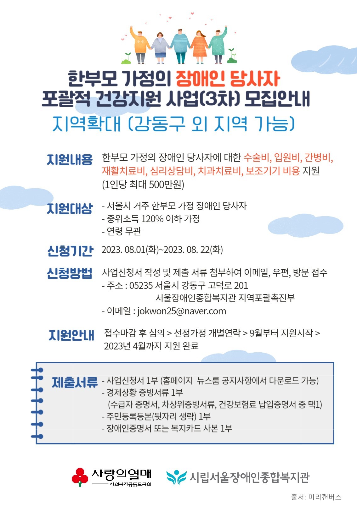 기타문의 : 서울장애인종합복지관 지역포괄촉진부 02-440-5853 권정옥 사회복지사