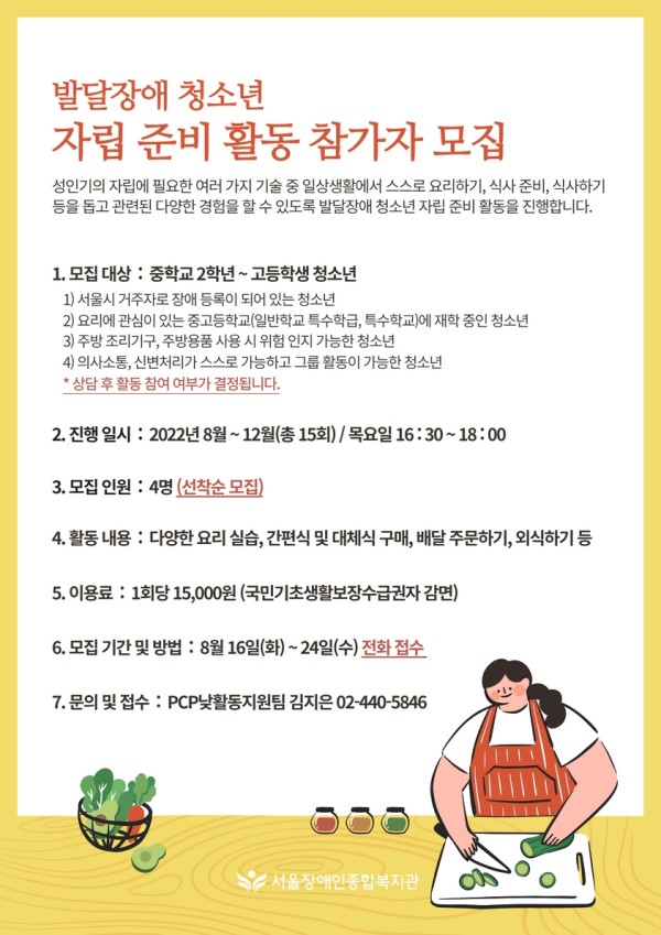 마감 발달장애 청소년 자립준비활동 참가자 모집 (8/16~8/24)