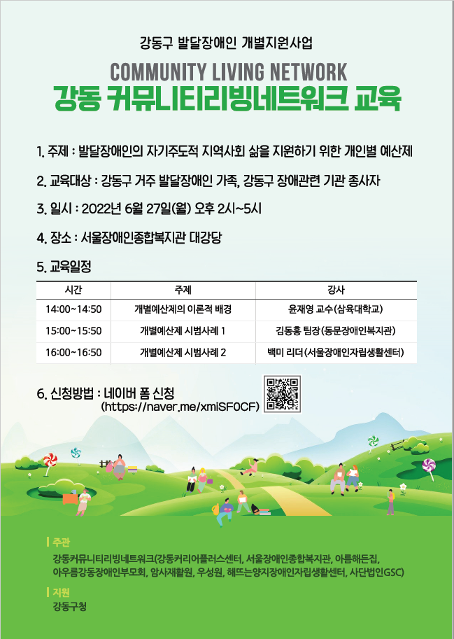 마감 [강동구 발달장애인 개별지원사업] 강동 커뮤니티리빙네트워크 교육 안내
