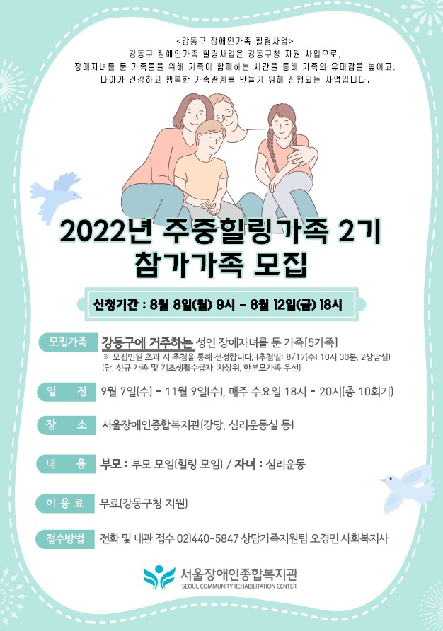 ▲ 2022년 강동구 힐링사업 주중힐링가족 2기 모집 포스터