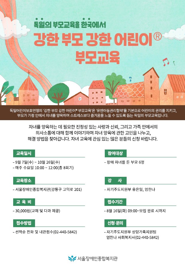 마감 강한 부모-강한 어린이 부모교육 참가자 모집