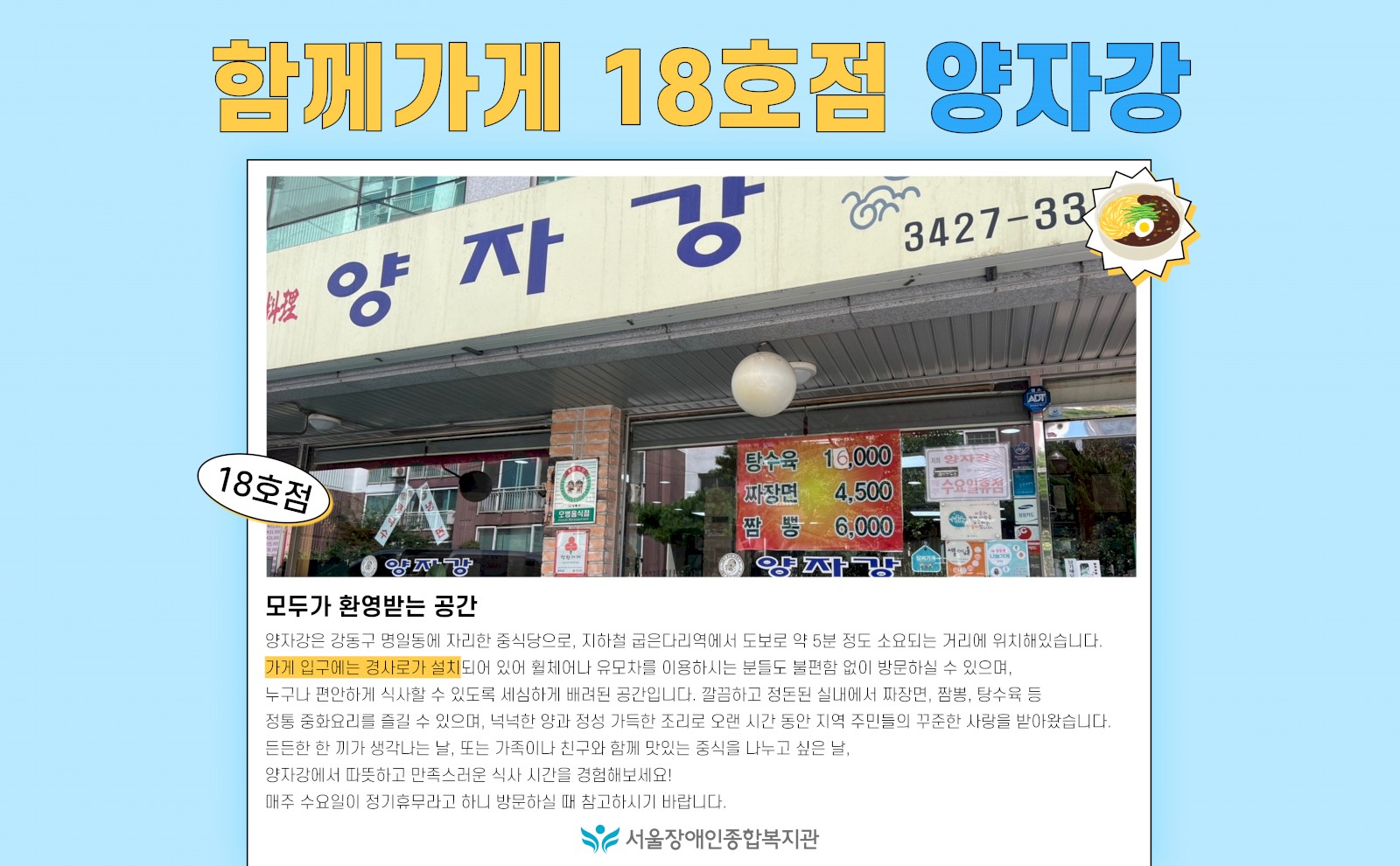 '함께가게' 18호점, '양자강' | 장애·비장애 지역주민 모두 편안하게 이용할 수 있는 '함께가게'