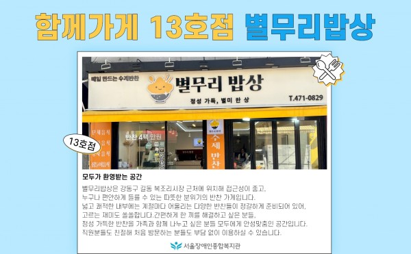 모두가 환영받는 공간, ‘함께가게’ 13호점, 별무리밥상을 소개합니다!