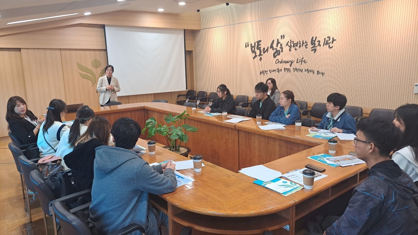 “장애인복지관 모델은 한국만의 고유한 장애인복지 서비스 모델이다. 모쪼록 우리나라 복지 서비스와 재활치료 서비스를 이해하는 데 유익한 시간을 보내길 빈다”고 전하며 학생들을 맞이했습니다.