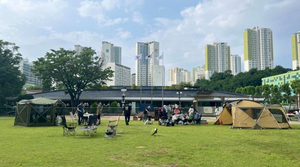 복지관 잔디밭이 오늘은 추억을 담은 캠핑장으로