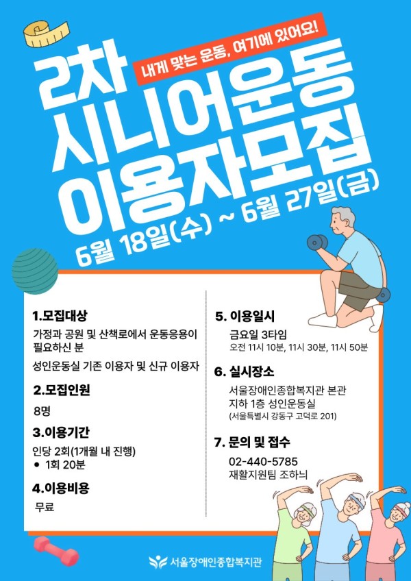 ✅ 모집 대상: 가정 및 공원 운동 응용이 필요한 분, 성인 운동실 기존/신규 이용자