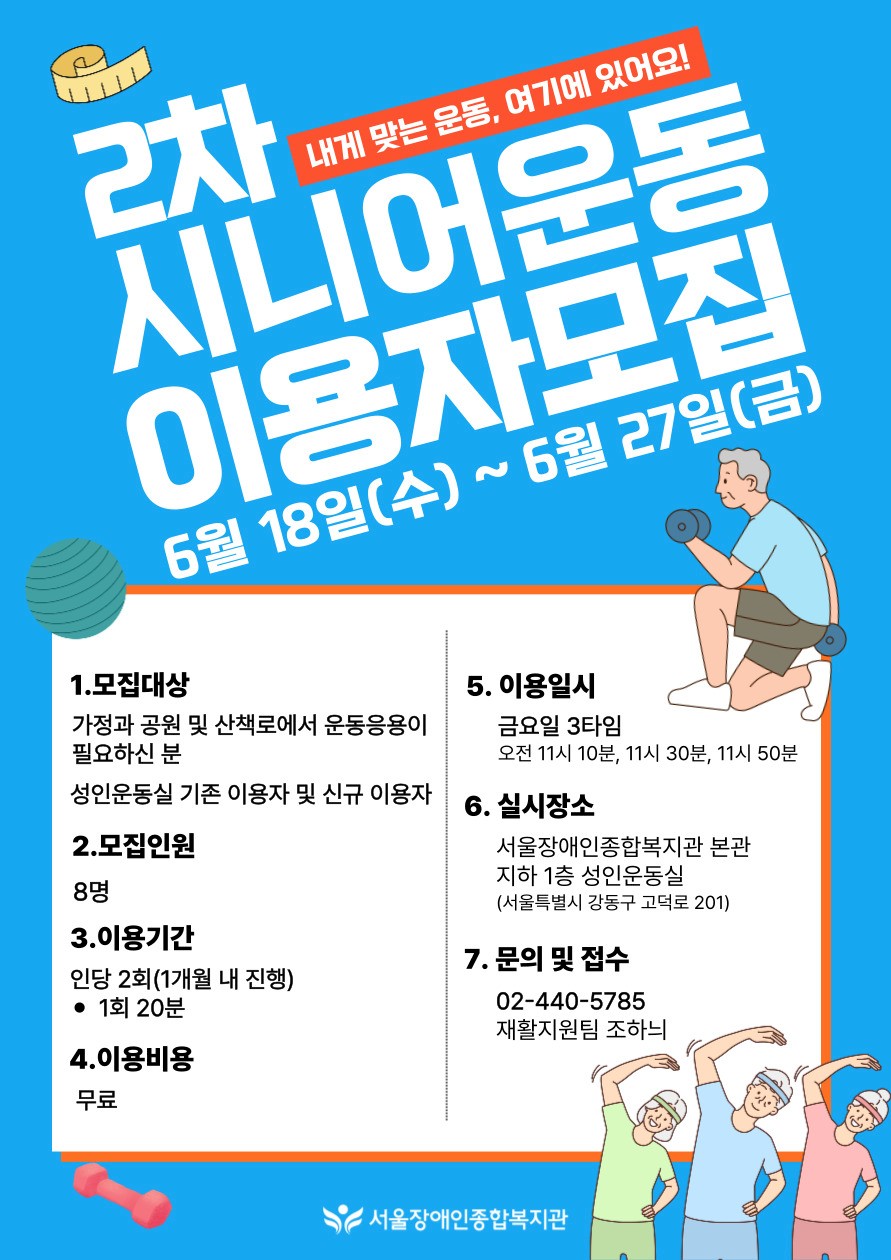 시니어 운동 코칭 2차 모집: 당신의 오늘을 한 번 더 새롭게!