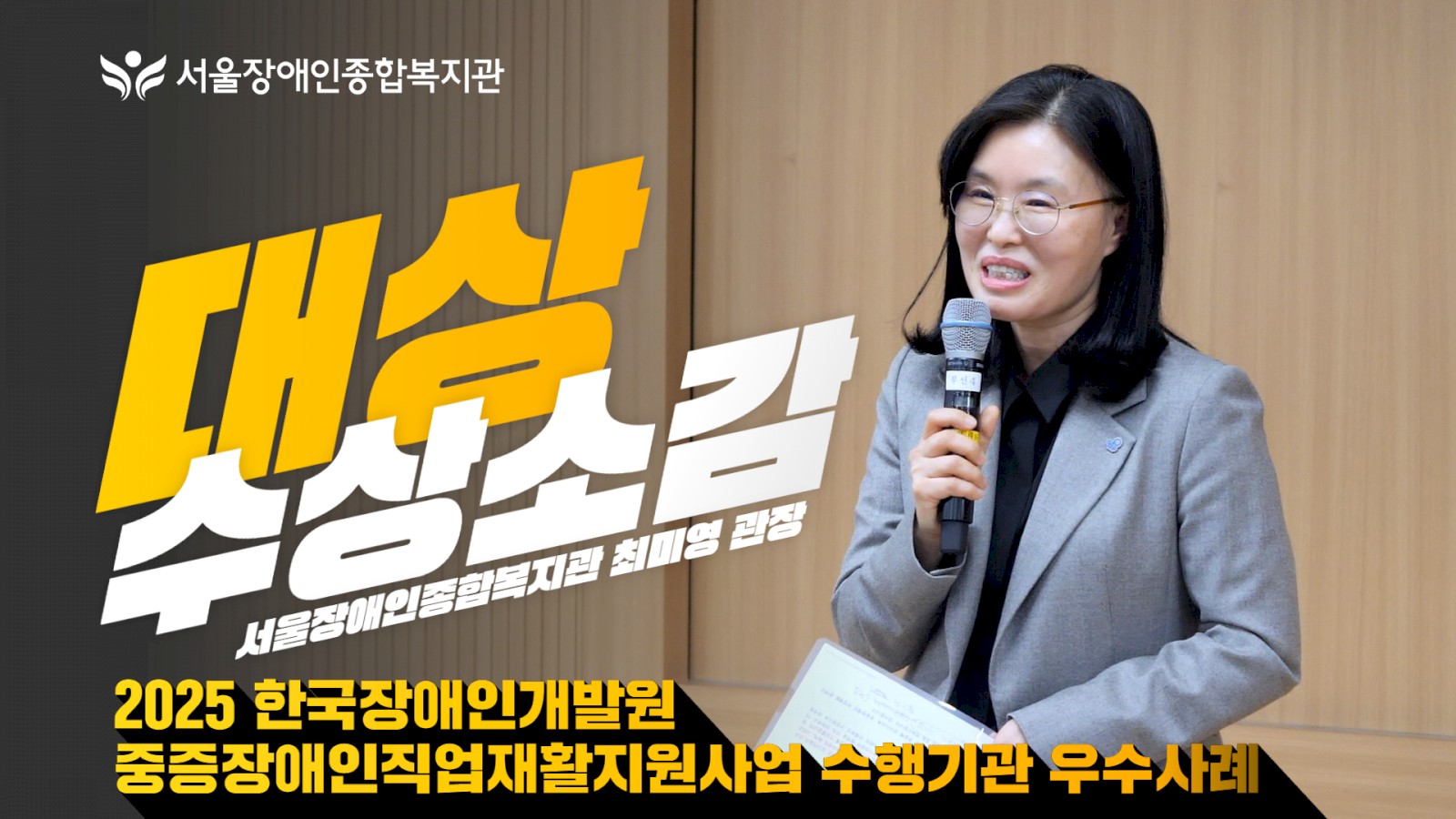2025 중증장애인고용지원사업 우수사례 시상식에서 수행기관 부문 ‘대상’을 수상했습니다.