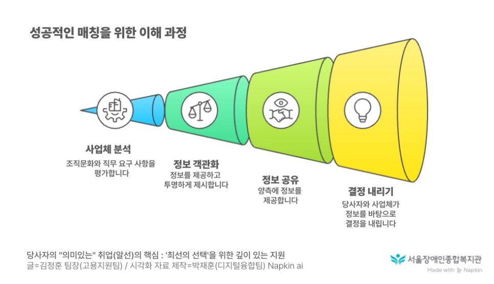 당사자의 강점과 희망, 사업체의 조직문화와 직무 특성까지 깊이 있게 파악하고,