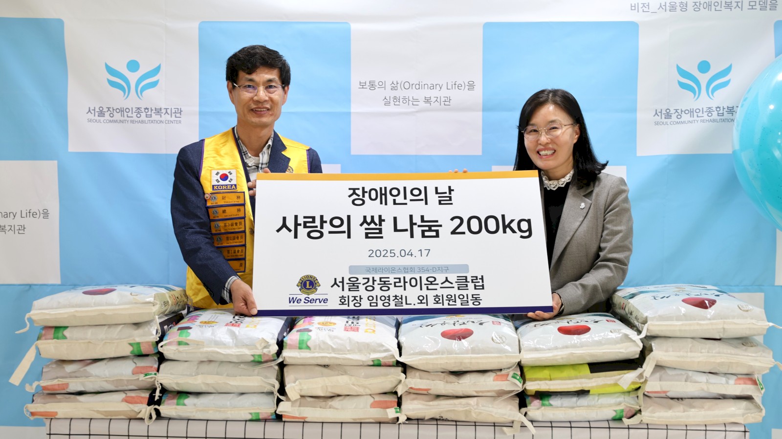 서울강동라이온스클럽 임영철 회장님과 회원들이 장애인의 날을 맞아 마음을 담은 쌀 200kg을 전했습니다.