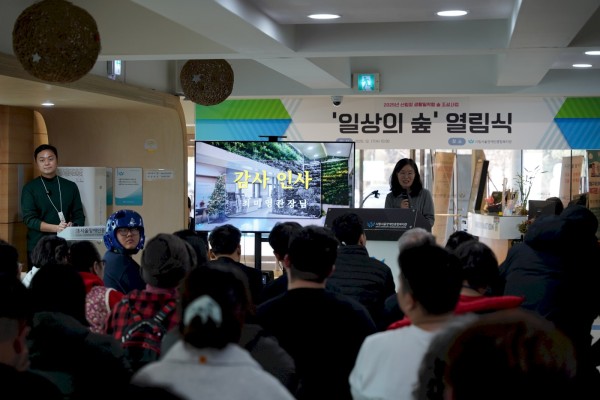 (영상 포함)복지관 로비에서 숲과 생명의 기운이! '일상의 숲' 그 열림식 현장 속으로