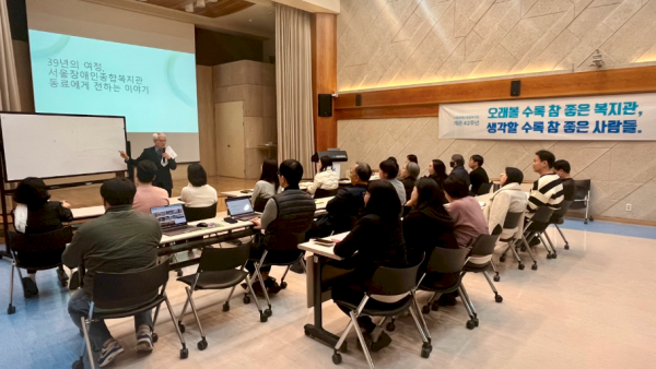 '39년의 여정, 서울장애인종합복지관 동료에게 전하는 이야기'를 제목으로 특별한 강연을 했습니다.