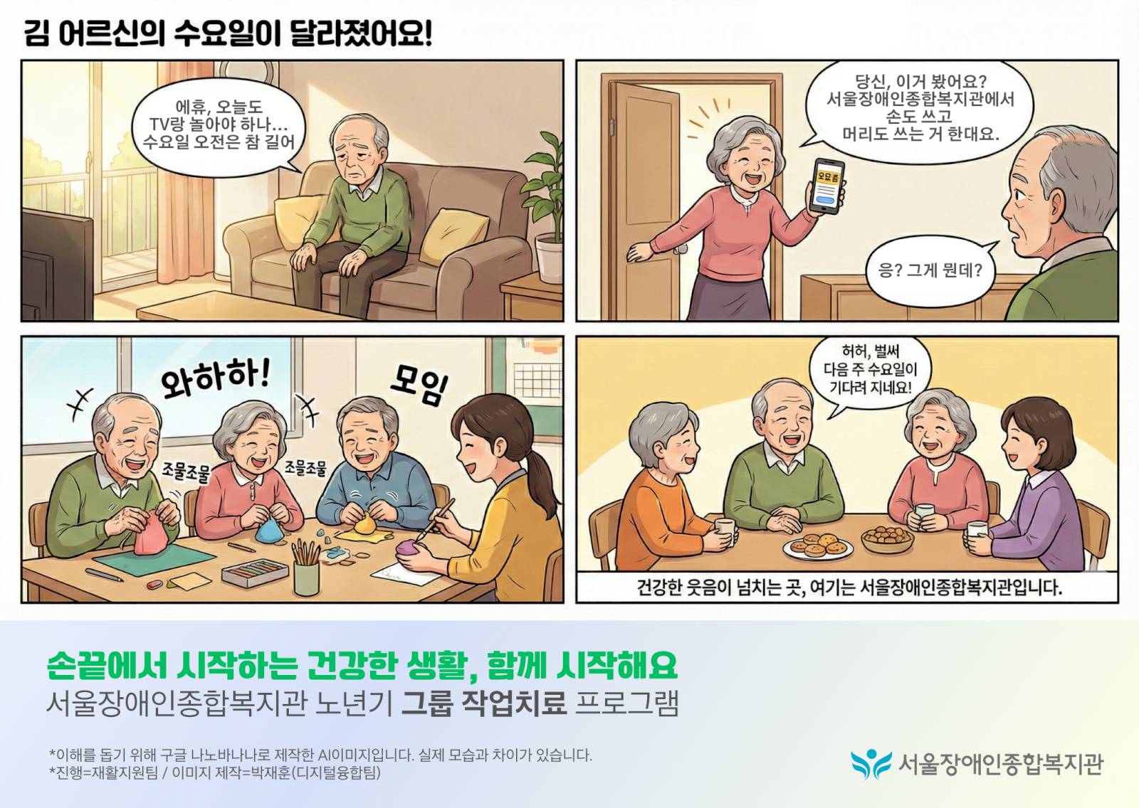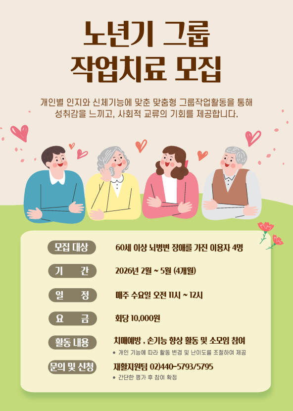 서울장애인종합복지관에서 60세 이상 뇌병변 장애가 있으신 선배님들을 위한 특별한 소모임을 준비했습니다.