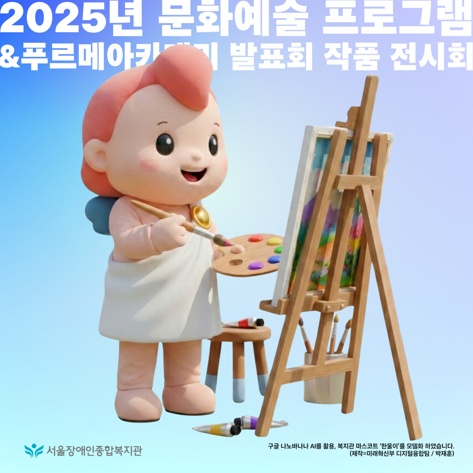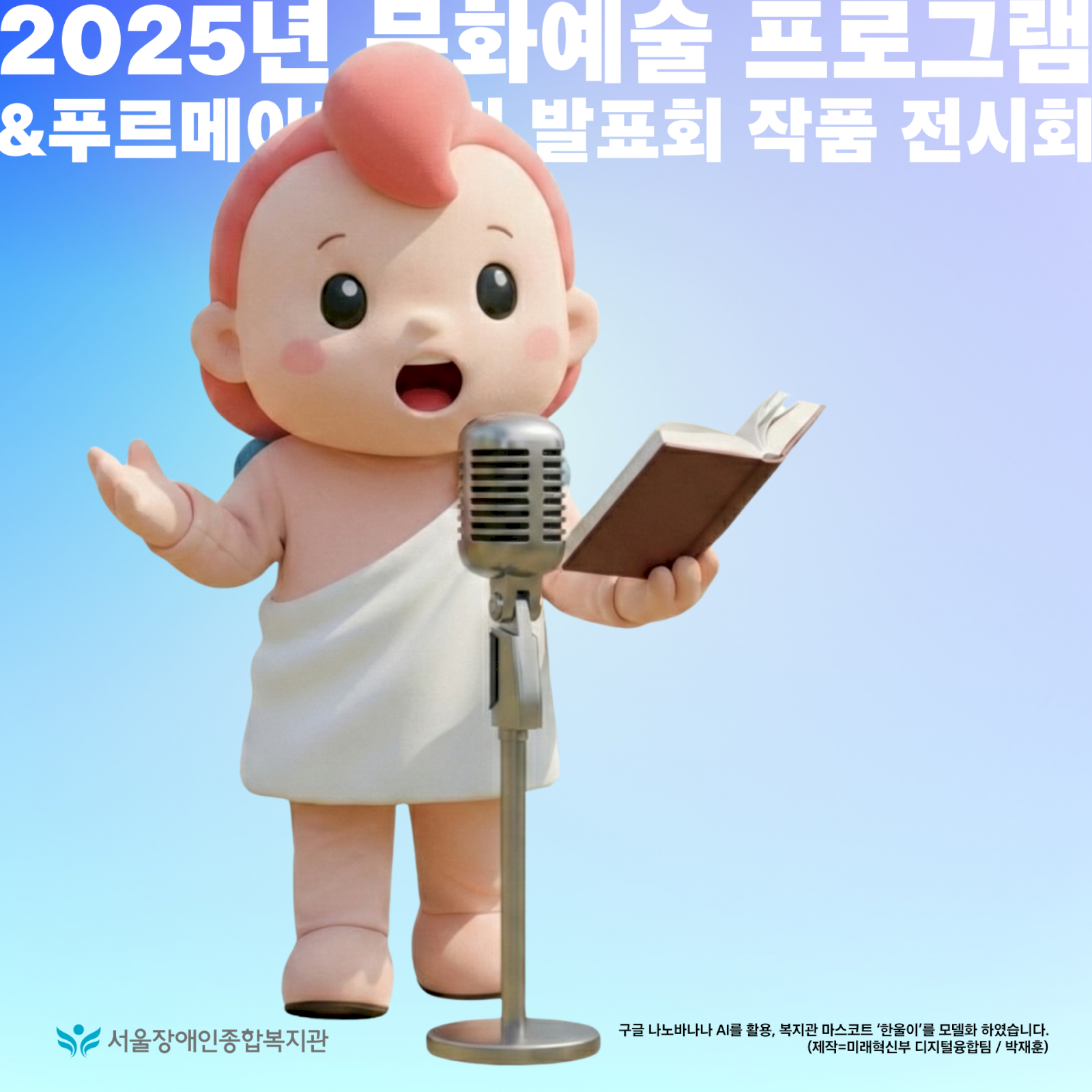 구글 나노바나나 AI를 활용, 복지관 마스코트 ‘한울이’를 모델화 하였습니다.
