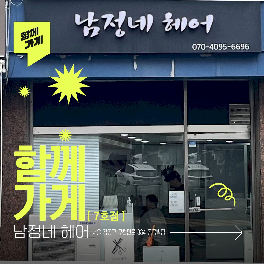 ['함께가게' 7호점: '남정네 헤어' 미용실 정보가 궁금하시다면 여기를 클릭해주세요!]