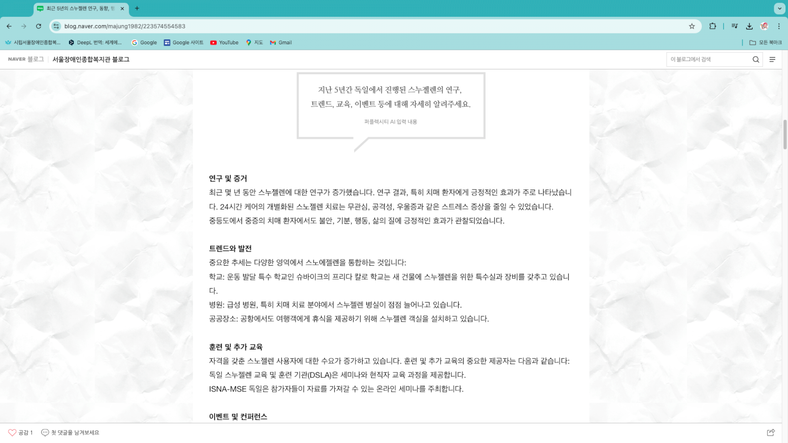 * 서울장애인종합복지관 디지털융합팀은 스누젤렌에 관한 정보를 수집 중이며 퍼플렉시티를 사용했습니다.
