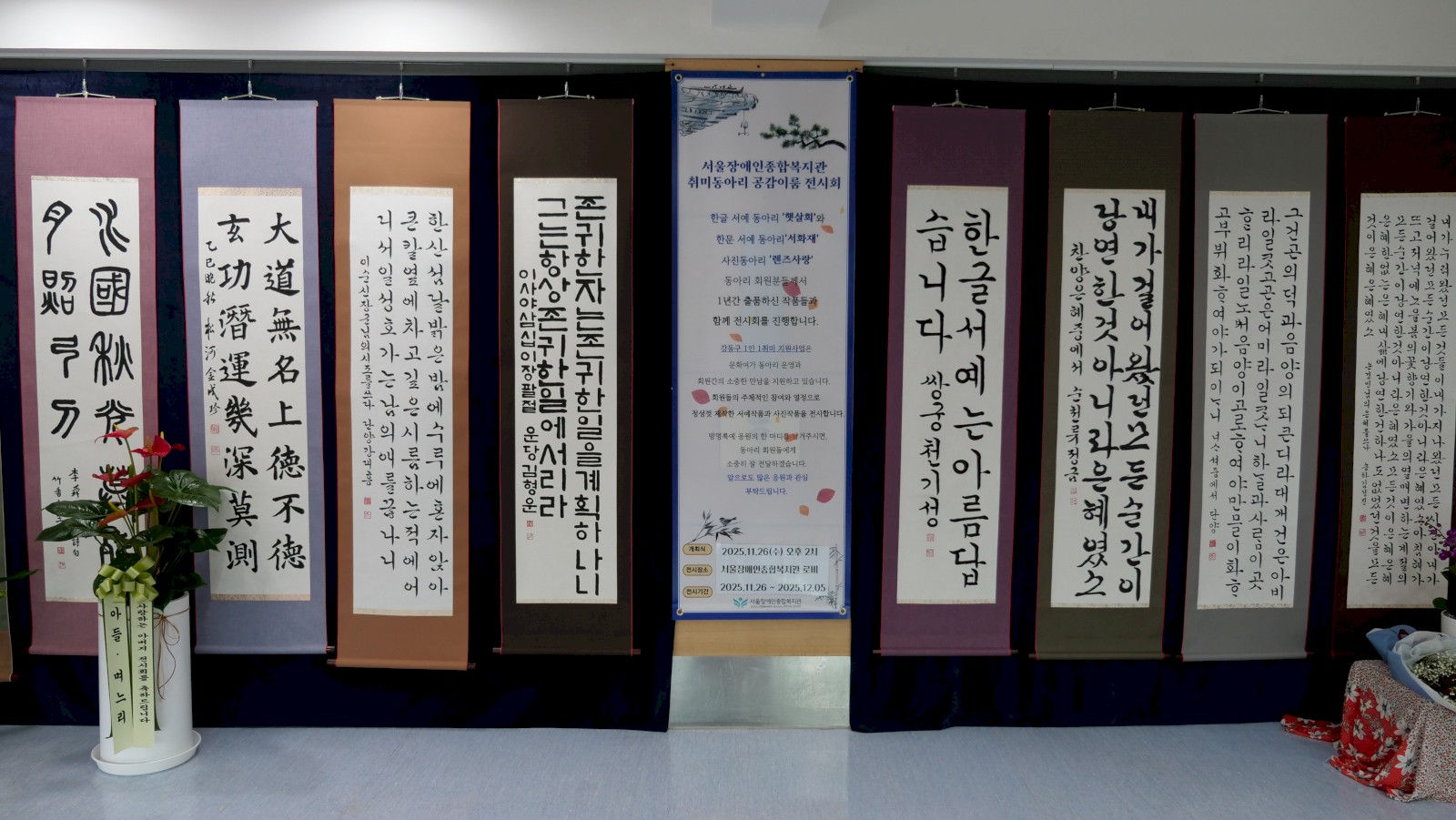 복지관 1층 로비가 그윽한 묵향과 멋진 사진들로 가득 채워졌어요.