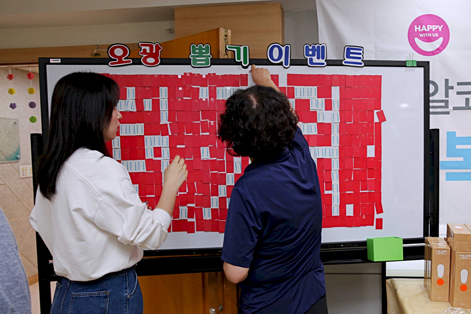 복지관을 정기적으로 후원하는 SPC 비알코리아는 이번 추석 행사를 위해 특별히 텀블러와 도넛을 후원하여 모두가 ‘꽝’ 없이 참여하는 뽑기 이벤트로 골고루 나눴습니다.