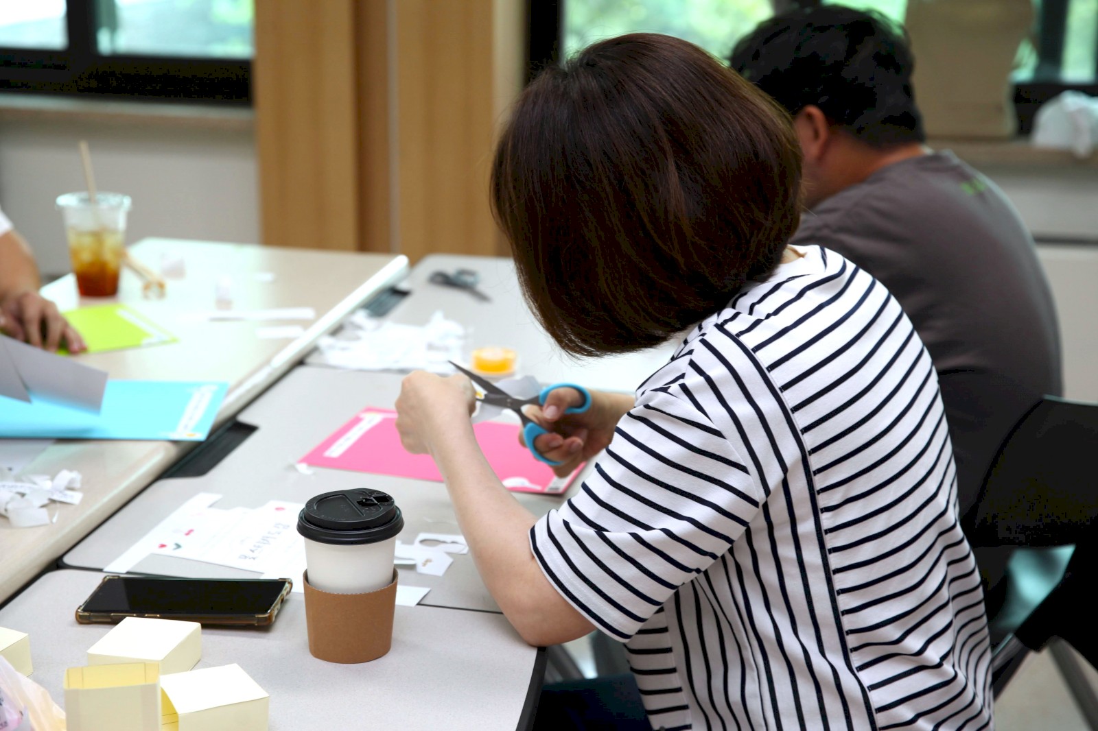 먼저, 7월 5일에 주민기획단이 모여 아파트 엘리베이터에 붙일 안내판을 제작했습니다.