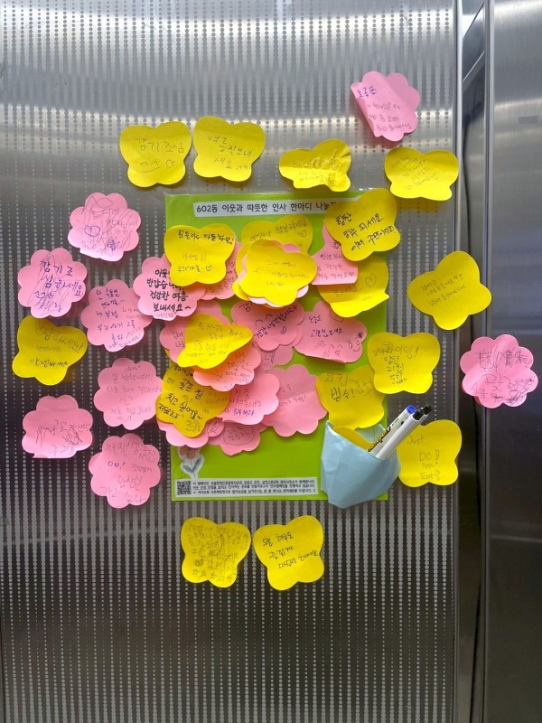 비록 눈에 보이지는 않지만, 참여해주신 분들과 엘리베이터를 오고 가며 메시지를 읽은 분들의 마음속에는 이웃을 생각하는 따스함이 솟아났으리라 생각합니다.