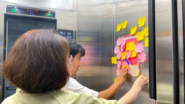 엘리베이터 벽면까지 포스트잇이 빼곡했고,어떤 동은 비치한 포스트잇이 모자라 다른 포스트잇을 추가로 사용하기도 했습니다.