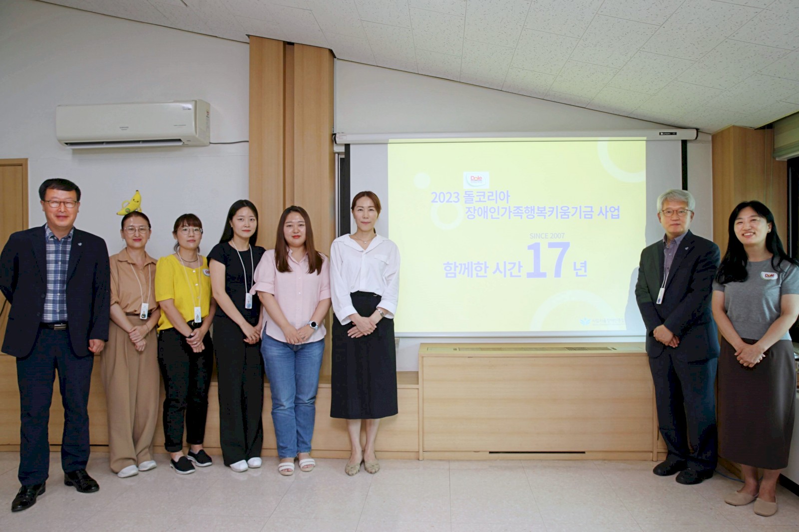 지난 7월 21일(금), 복지관의 오랜 후원기업인 Dole(돌)코리아와 '2023년 장애인가족행복키움기금 지원사업'에 관한 논의를 진행했습니다. 돌코리아와 복지관은 2007년 돌코리아가 장애인가족지원사업을 시작한 이래 매년 2~3차례 당해연도 지원사업과 세부 사항에 대한 논의를 진행하고 있습니다.