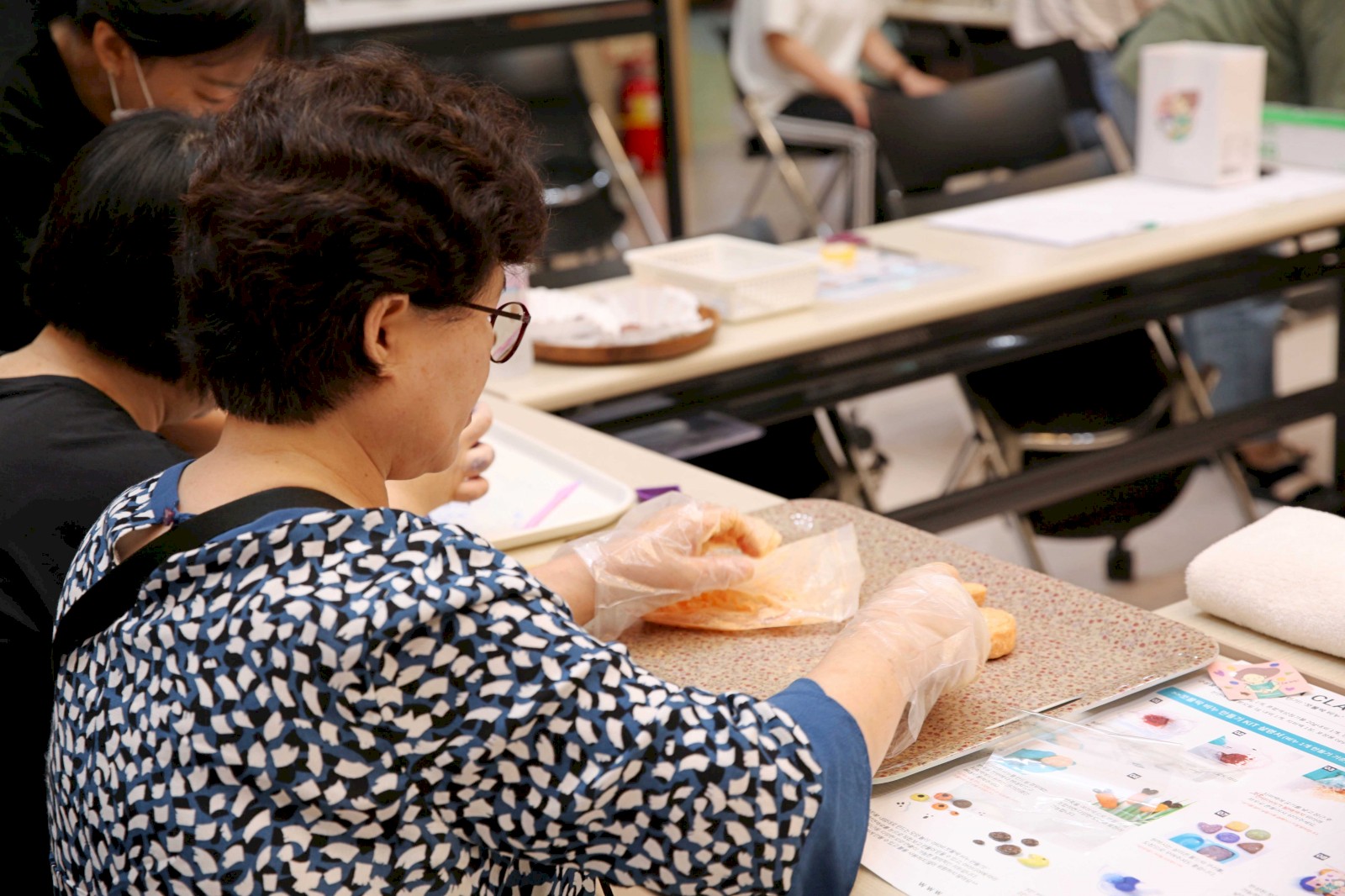 우리가 일상 속에서 자주 사용하는 샴푸와 바디워시 등의 씻는 도구는 주로 플라스틱 통 안에 담겨있습니다. 그 안의 내용물들을 다 사용하고 나면, 플라스틱 통만 남게 되고, 그 많은 통들은 쓰레기를 모아두는 곳으로 버려지게 됩니다. 이렇게 버려지게 된 플라스틱이 없어지기까지는 약 500년이라는 시간이 걸린다고 합니다. 능력향상촉진부에서는 플라스틱 사용을 줄이기 위해 친환경 비누 만들기 체험부스를 통해 환경의 중요성에 대해 알리며, 작업치료사들은 참여자들과 함께 친환경 비누 만들기 체험을 진행했습니다.