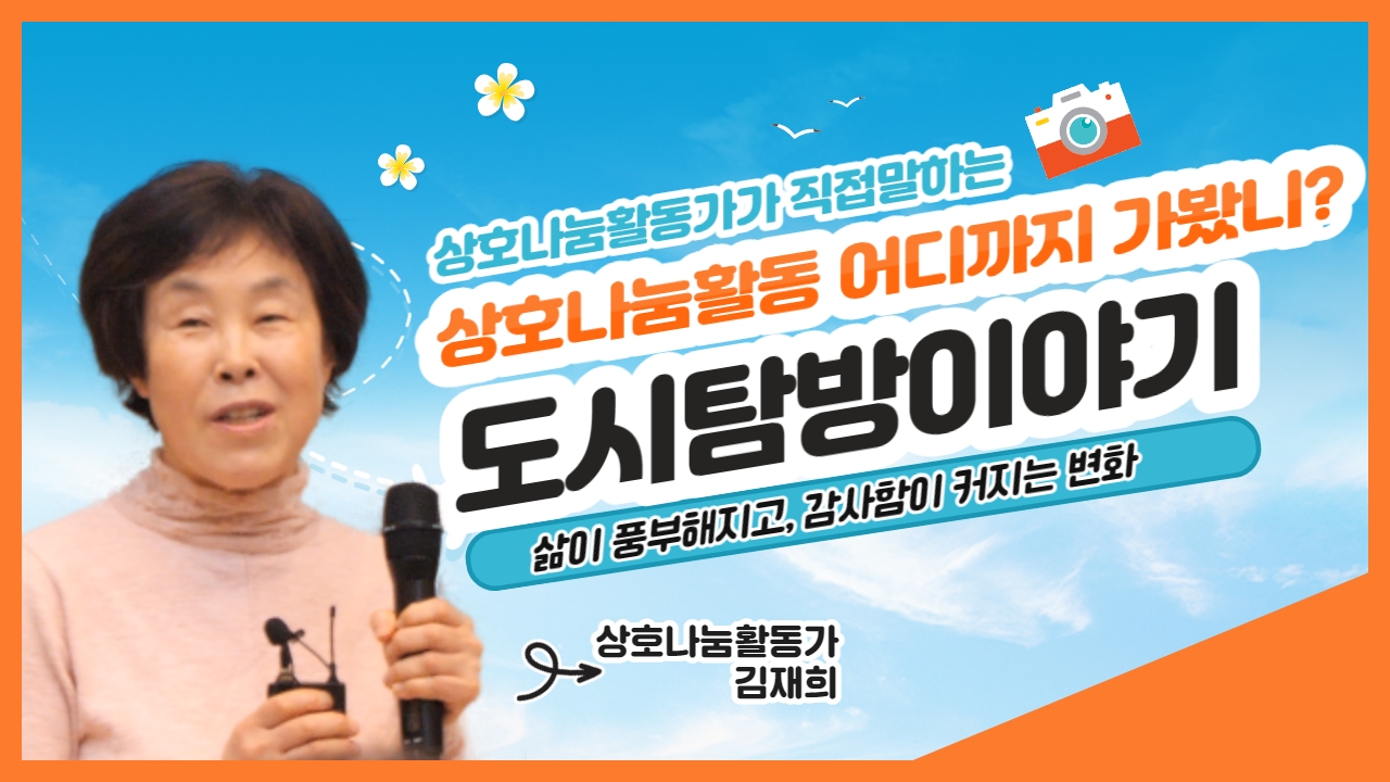 그 중 첫 번째 이야기, 김재희 상호나눔활동가의 도시 탐방이야기를 화면에 담았습니다.