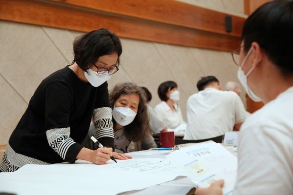 자체워크숍 시간에는 배운 것과 느낀 것, 실천하고 싶은 것에 대해 이야기를 나누며 변화에 대해 의논하고 조직 내 조화로운 소통과 성장을 위한 실천의지를 다졌으며, 마지막으로는 조별로 나눈 얘기를 모두 함께 공유하며 중간관리자 연수를 마쳤습니다.